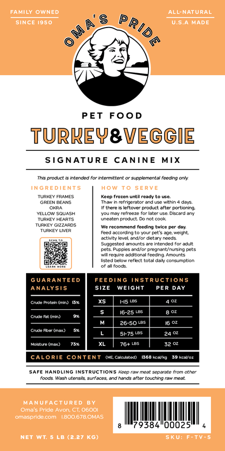 Ingredients: Turkey meat & bone, green beans, okra, yellow squash, turkey hearts, turkey gizzards, turkey liver.